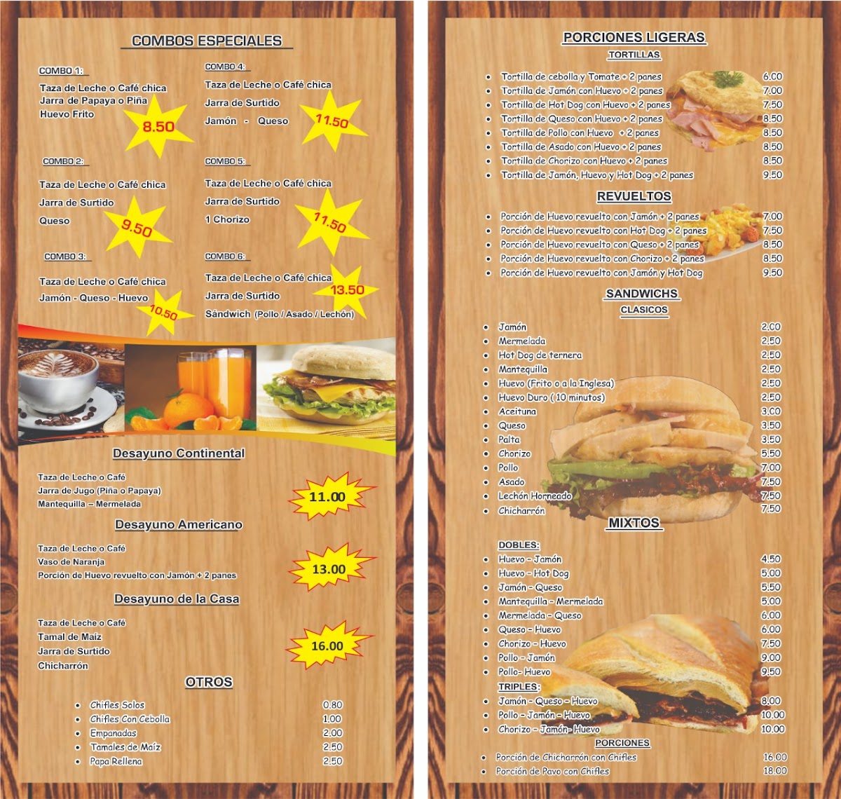 - Breakfast Favorites: Start your day with their various combos, which include sandwiches, fresh fruit juices, and aromatic coffee or café con leche.
